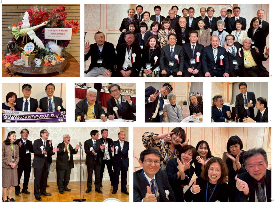 1期生の先輩に当時の写真を見せてもらったり、5期生の先輩からは激動の人生の変遷を聞かせてもらったり、もちろん関東在住の同期とも懐かしい思い出話で盛り上がり、おいしい料理やお酒(本部メンバーから能登復興を願って能登の日本酒を差し入れ!)をいただきながら、あっという間の2時間半でした。